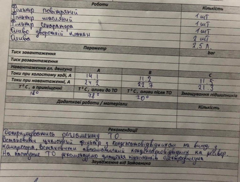 Технічне обслуговування компрсора 11 kW